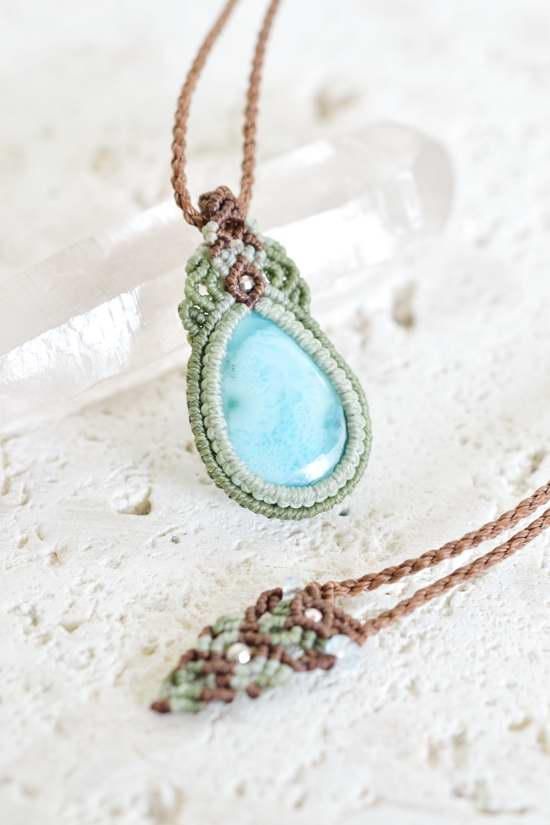 ヒーリングストーン☆ラリマーマクラメペンダント