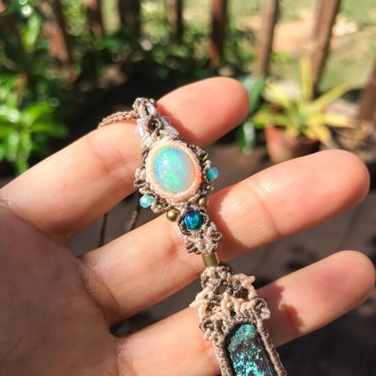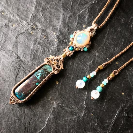 クリソコラ×エチオピアンオパールマクラメペンダント