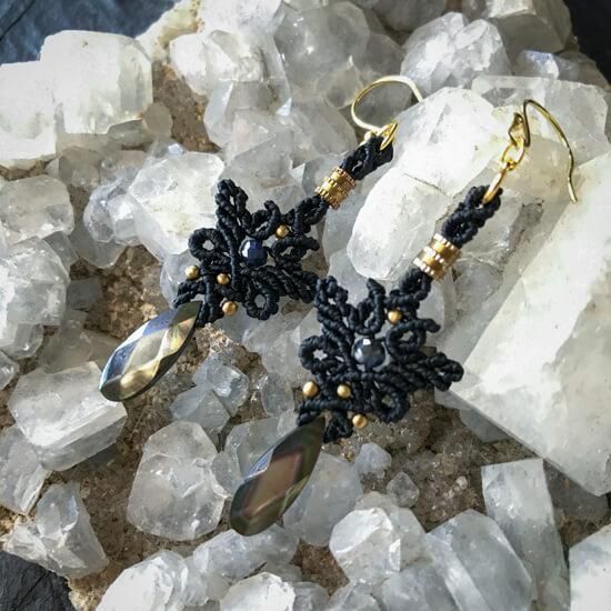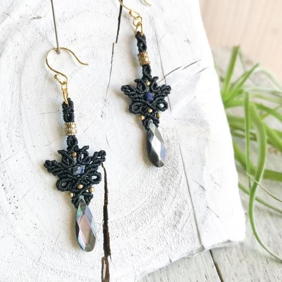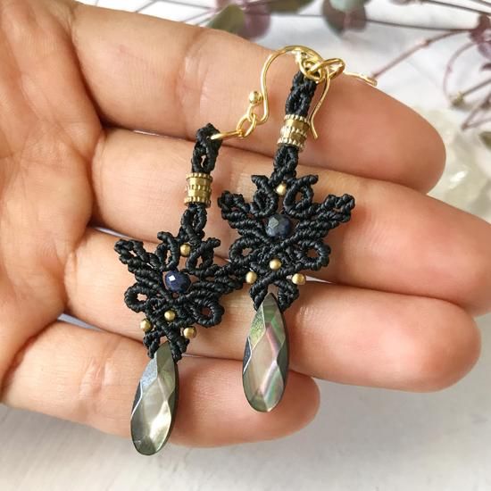 大人な雰囲気漂う雫形の黒蝶貝をブラックのコード一色でしなやかに編み上げました。